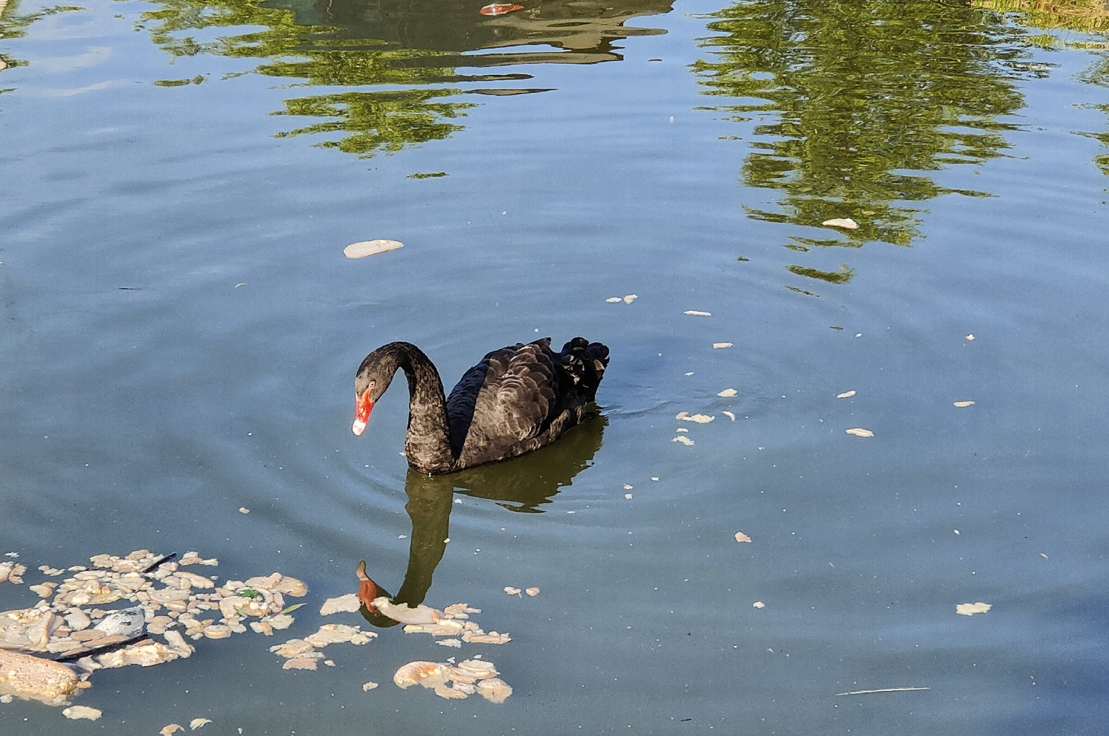 Polecam usiąść przy stoliku na klimatycznym molo, na którym są palmy i zabytkowe meble, które dodają uroku tego miejsca. W wodzie pływają łabędzie(nawet czarny łabędź),kaczki i nutrie.